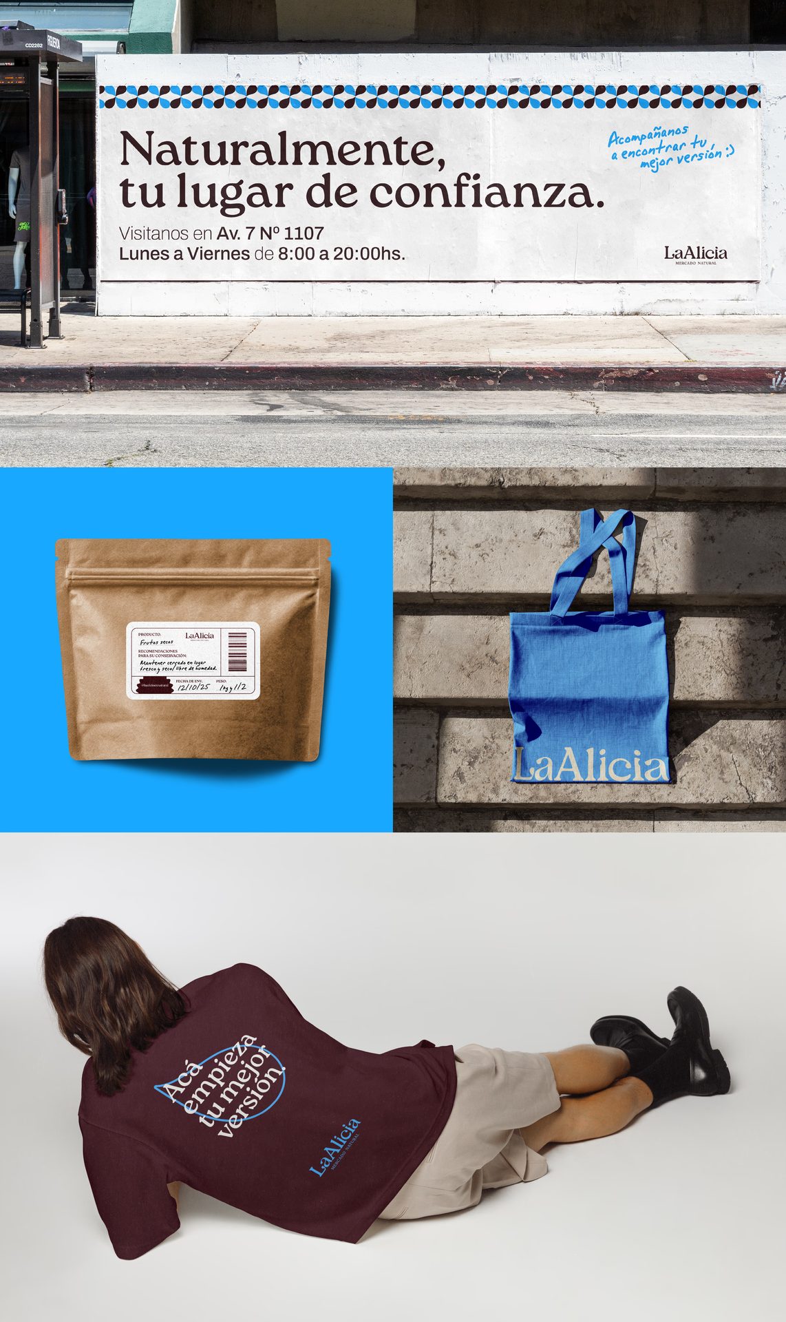 La Alicia es un mercado natural con más de 20 años de historia, que evolucionó de una dietética a un mercado natural para ampliar y diversificar su propuesta. El rebranding acompaña este crecimiento, modernizando la marca sin perder sus valores cercanos, familiares y conscientes.